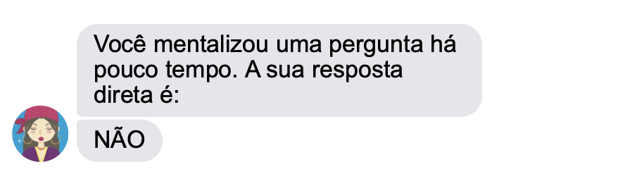 A cartomante Cláudia leu a pergunta que você mentalizou e não teve qualquer tipo de dúvidas em relação ao que lhe responder, a sua resposta é um claro NÃO. Tente aproveitar esta resposta direta para melhorar a sua vida.